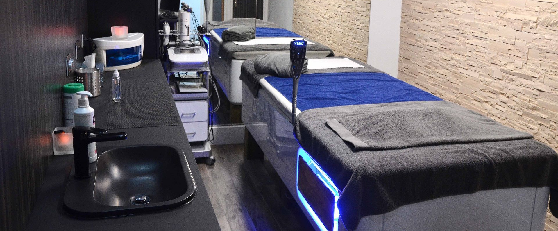 Loin d'être un gadget, BG FACTORY s'est équipé de la dernière version de lits massants de la marque Hydrojet. Ce constructeur Français équipe généralement les Kinés et les Spas d'hôtels de luxe.